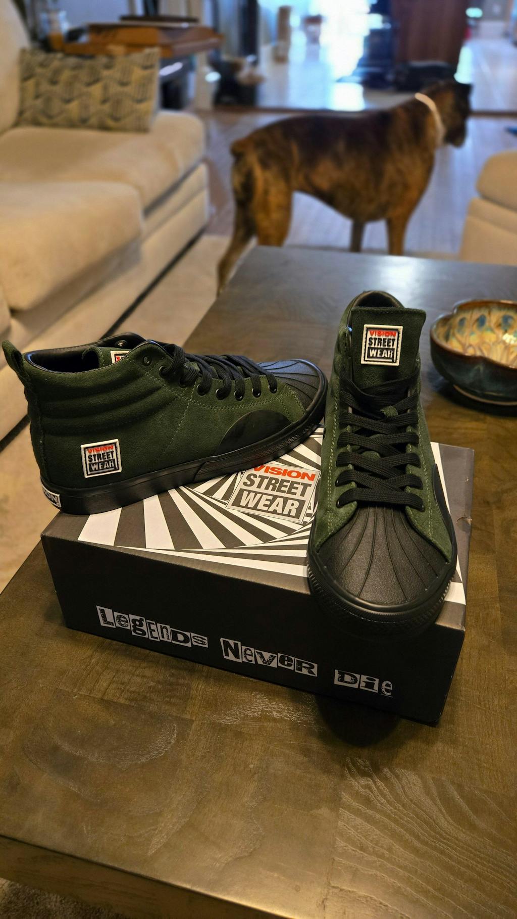 Built for skate performance and everyday street wear, these Leather Suede High Top Sneakers in Army deliver durability, grip, and rugged Vision Street Wear attitude. Designed by skaters, for skaters, the high-top silhouette provides added ankle support while maintaining flexibility and board feel.