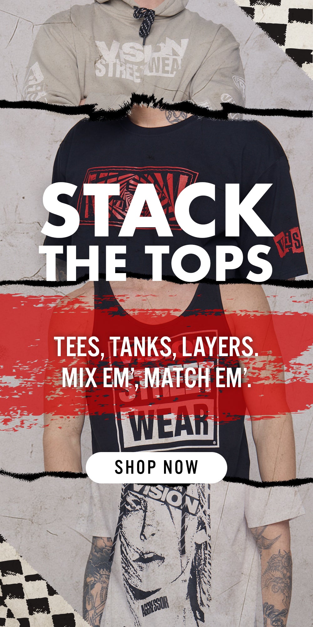 Checker Print Sleeve Logo T-Shirt - Ivory/Black